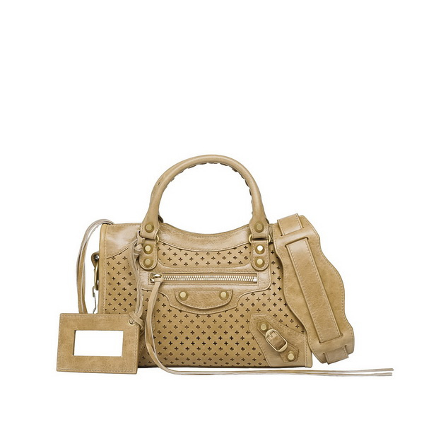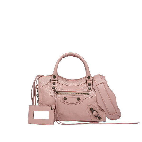 The brief and fashion design of the new Balenciaga Mini City bags can catch your eyes at the first sight. This collection is smaller versions of the well-received city bags, characteristic by their handmade handles and shoulder staps. They are both removable and adjustable to meet different needs and match all kinds of styles. To make sure your personal stuff safety, all the handbags are equipped with top zip closure and a front zip pocket. Colorful lampskins give their owners an enjoyable new experience. Black, pink, yellow, red and so on, together with their practical gentle appearances exude the Balenciaga’s elegant flavour. Too many handbags and it’s to difficult to find and distinguish yourself in the world of handbags? This Balenciaga’s new collection can make it with its exquisite, elegant, and chic appearance.Check the following list and find what you like.