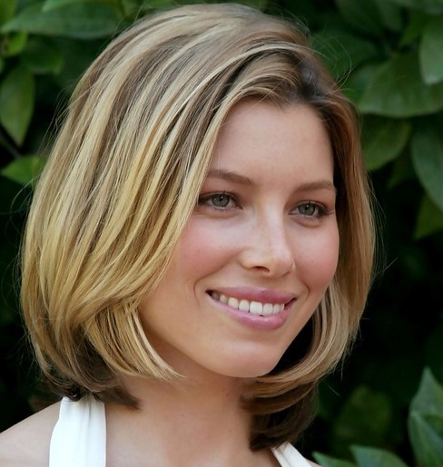 Jessica Biel is just like a next-door girl by styling herself a blonde bob. She looks so vivacity. The mid-length bob allows her a natural beauty to be discovered. With the parted-sides, the haircut highlights her face a lot.