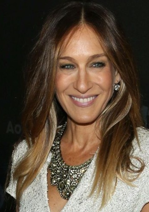 Sarah Jessica Parker chooses long layered do with center parting for her straight hair. She makes the hair in ombre do which adds more colors into her outfit.