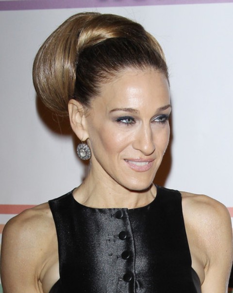 Sarah Jessica Parker’s classic updo brings us back to ‘60s. The vintage look is made by twisting the long hair on the crown. It doesn’t look fuss but sleek and shimmering.