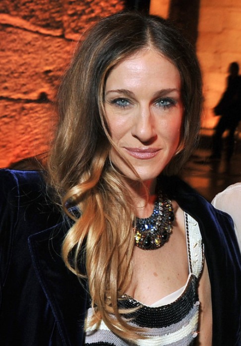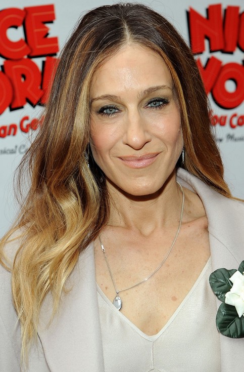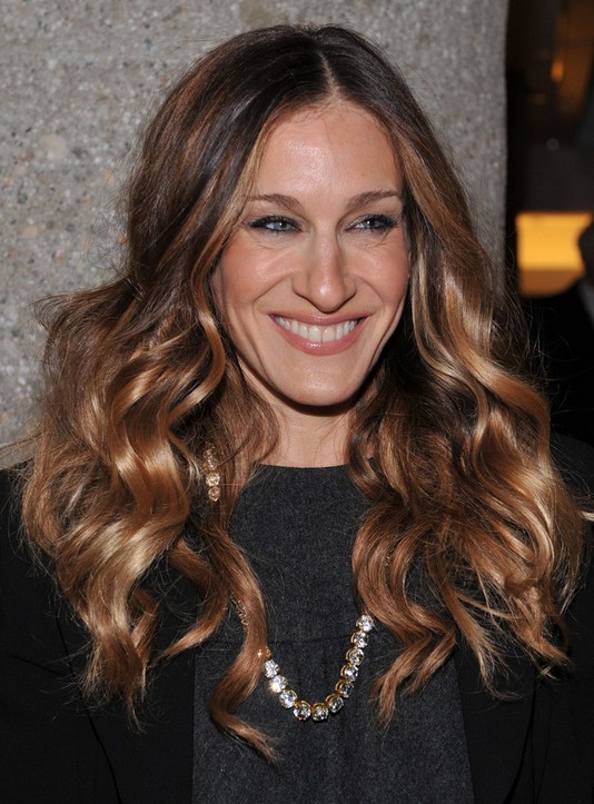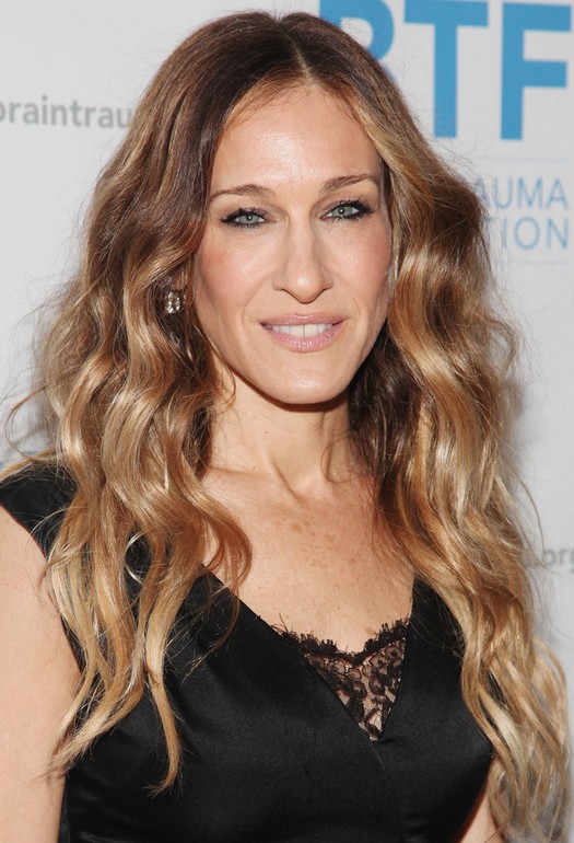 Sarah Jessica Parker wears her long hair in the ombre style with long side parting. She puts all the slight waves into her right shoulder. The tresses look glossy and bright.