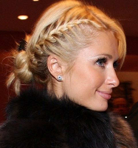 Paris Hilton Hairstyles: Side-parted Braided Updo