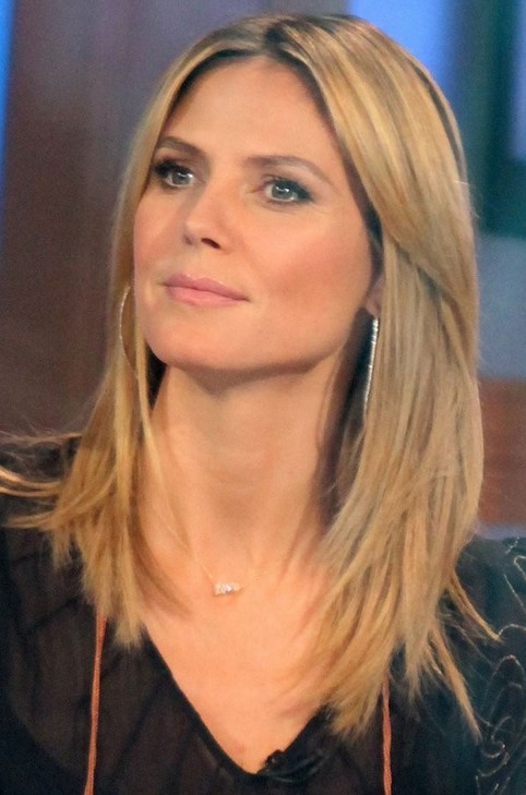 Heidi Klum Medium Length Hairstyle: Straight Haircut with Side Bang