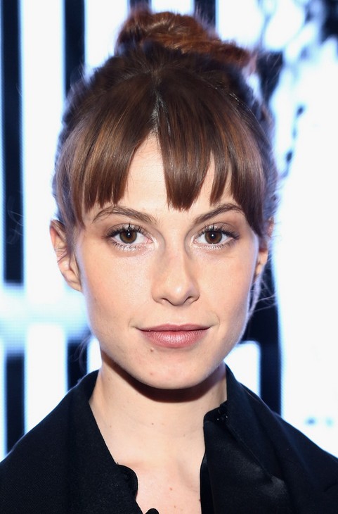 Elettra Wiedemann’s updo not only elongates her face, but also enlightens her eyes because of the swept bangs. You can divide the blunt bangs into two or three small part as Elettra Wiedemann does to give highlight to the eyes.