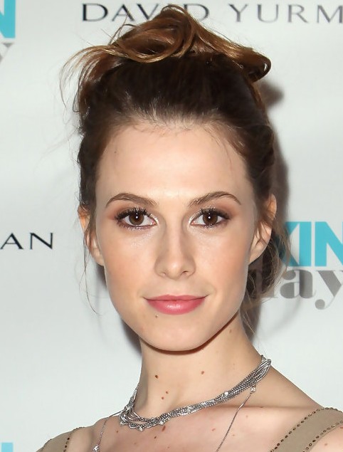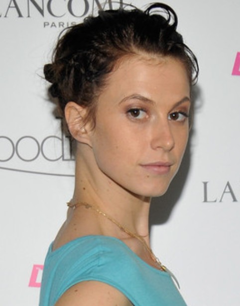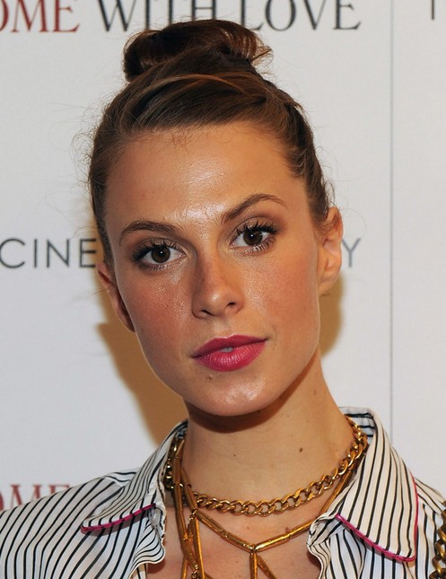 Elettra Wiedemann is elegant wearing a funny bun with a silver accessory. She teases her tresses up and twists a bun atop. If you decide to wear this funny updo, you can pair it with something interesting instead of the silver piece and don’t forget your pink lipstick.