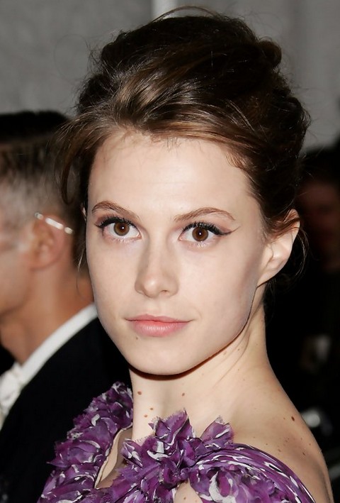 Elettra Wiedemann’s updo is a casual look. She just pins up all the locks loosely and sweeps wind-blown bangs.