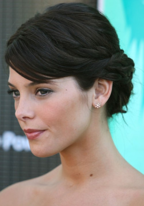 Ashley Greene wears a classic updo with side-swept bangs for the look. The hair is the best for the brunette, but actually the hair can be changed into different colors. Any girl who has long hair or mid-length hair can try out the hairstyle because the hair can elongate the neck and bring a classic look.