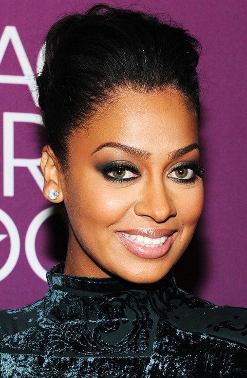 La La Anthony is elegant with the retro updo. She pins up her locks low at the nape and styles the featured bangs.