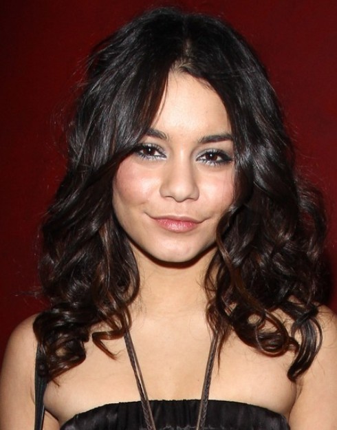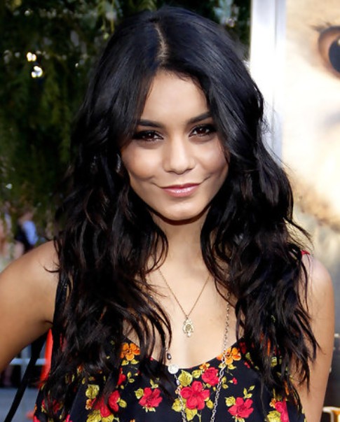 Vanessa Hudgens wears soft curls for her long black hair. The hair is side-parted and it gives her a bright look.