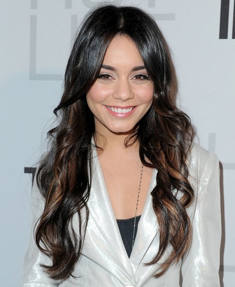 Vanessa Hudgens looks gorgeous wearing the long curly hair that has highlights and center part. The highlights add color to her make-up while the center part gives a bright look.