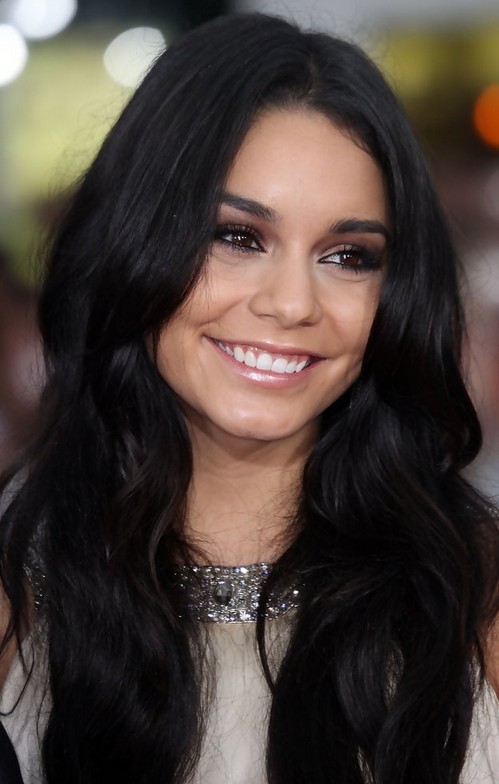 Vanessa Hudgens chooses a simple look with a raven and straight hair. She is still fresh and sassy in the side-parted hair.