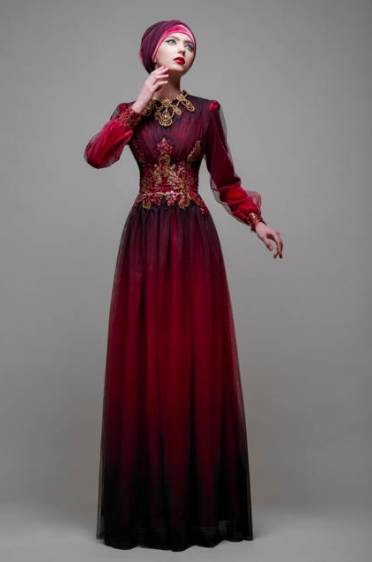 Add a splash of colour to your bridal pallet and stun those around you in this gorgeous wedding gown in the flawless maroon. The full-length sleeves go well with the golden décor and the mesh overlay adds an exquisite finishing touch.