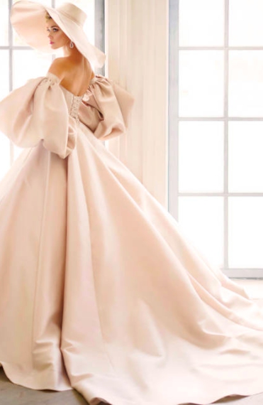 The smooth lines and gloss of the fabric of this wedding gown amplify your bridal glow, and the removable bubble sleeves make your look stand out. Feminine and stylish, this piece is a fabulous take on the traditional wedding gown that is sure to have heads turning.