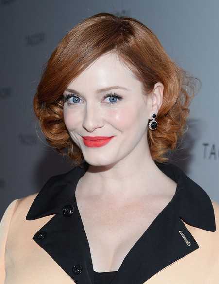 Christina Hendricks Short Haircut – Elegant brown wavy hair style for spring