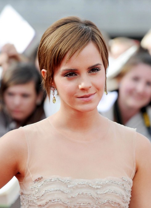 Emma Watson short haircut – popular straight short cut with side swept bangs