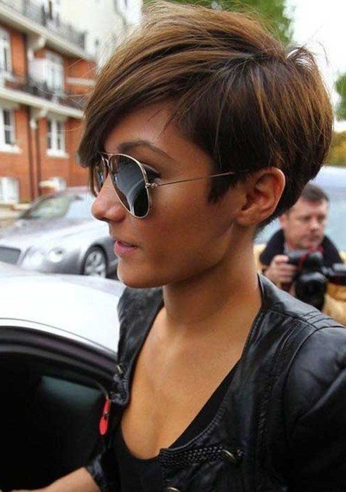 Frankie Sandford short hairstyle – Sexy layered short haircut with side swept bangs