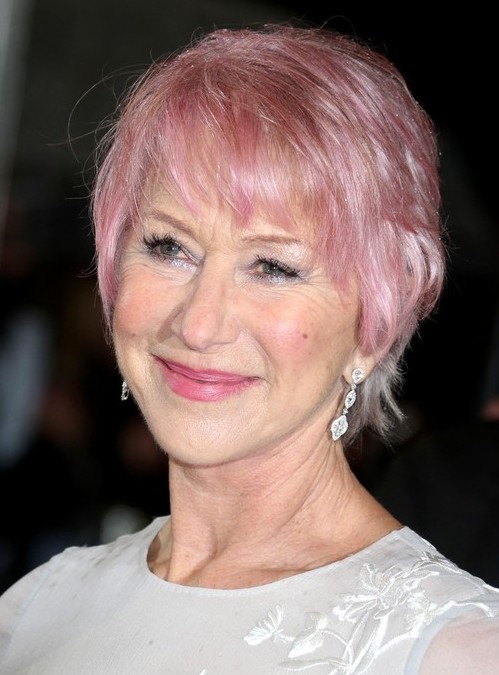 Helen Mirren short haircut – pink short pixie hairstyle for women over 60