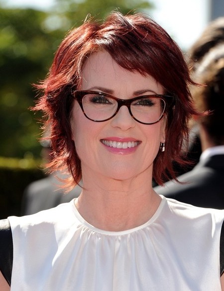 Megan Mullally short hairstyle – short red razor cut with layers