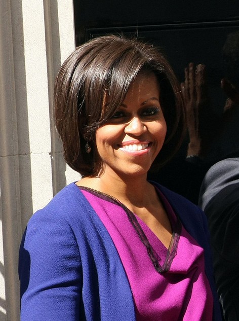 Michelle Obama short hairstyle – dark thick bob hair style with bangs