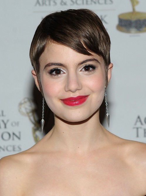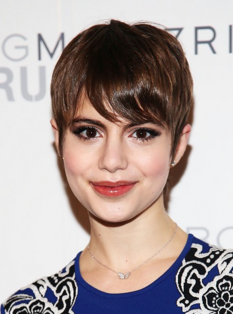 Megan Boone Short Haircut – Cute short straight hair style – pixie cut with side swept bangs