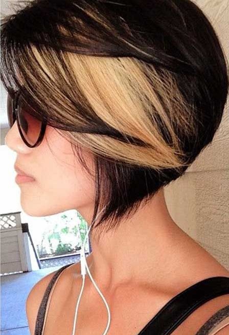 You can choose black hair with blonde highlights to the bangs or the hair ends. Cascading locks appear stunning and cool when paired with vivid highlights.. You can also get it feminine and enjoy the cute look. It can also create you much charm and grace.