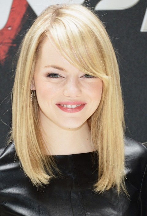 Emma Stone Hairstyles: 2014 Pretty Straight Haircut with Bangs