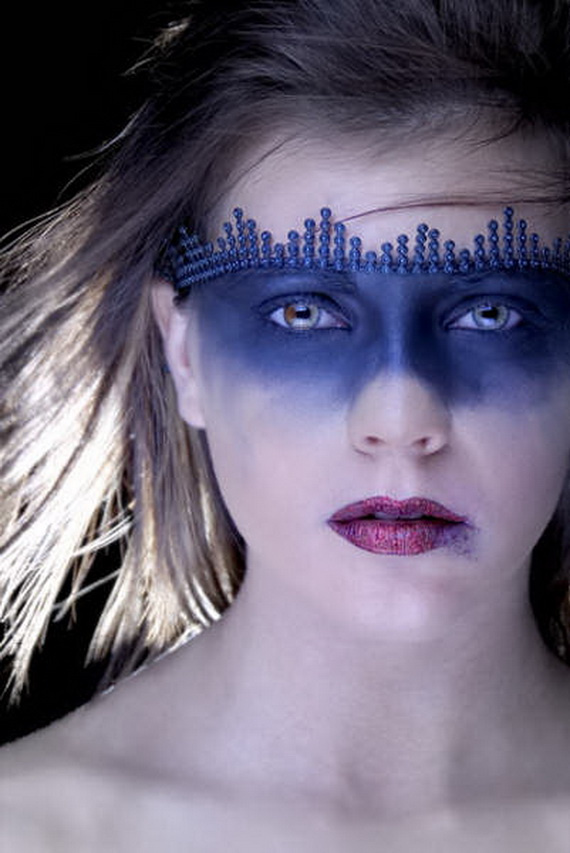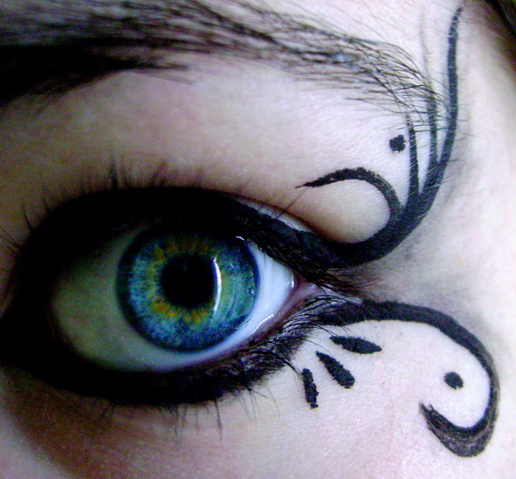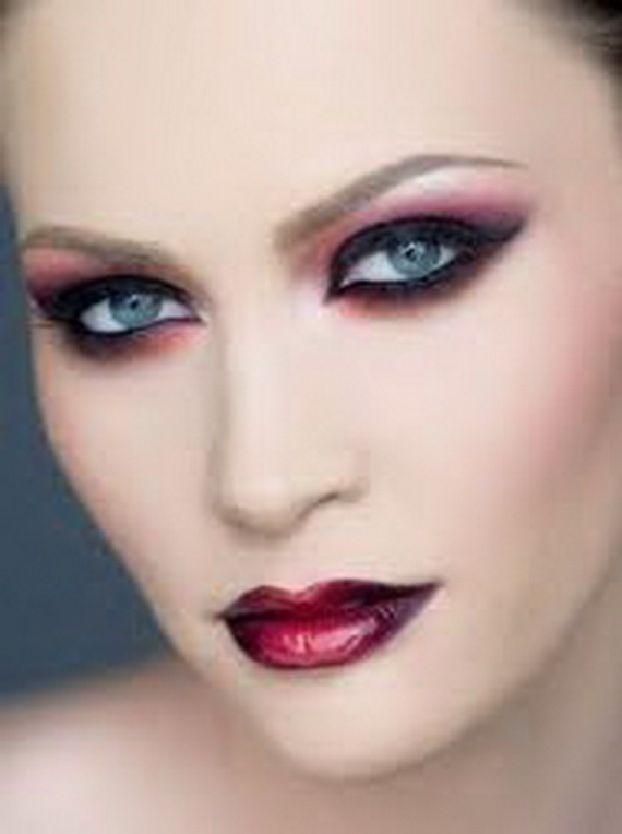 Easy or complicated, drawing decorative pattern around your eye or on the upper eyelid can make you look charming, mysterious, seductive, or creepy. For traditional sultry gothic makeup, dark and heavy eye shade is an indispensable part of it to generate the atmosphere of mystery and temptation. Gothic makeup can fit in different styles, allowing you to achieve perceptions in your mind through matching colors. With more colors that you can image, red, black, of coures, as well as dark blue, brown, and dark green can all add to your charm. Mixing green with black, violet or red are ideas that you have never seen before to match dark lipsticks and black nail color. Together with some glittering and magic spell, the gothic makeup idea will add gloumour to your look.