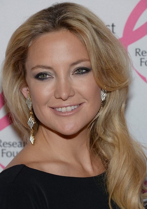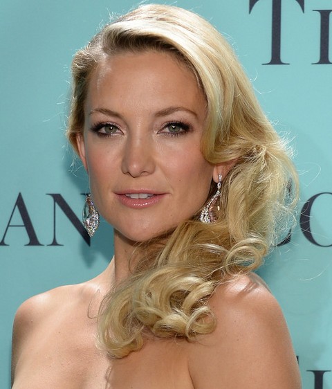 Kate Hudson Hairstyles: 2014 Voguish Side-swept Curls