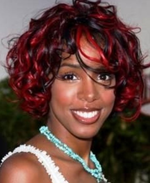 Kelly Rowland Hairstyles: Medium Curls with Red Highlights