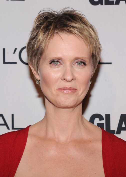 Cynthia Nixon Layered Short Pixie Cut – Short Hairstyles for Older Women Over 50 /Getty Images