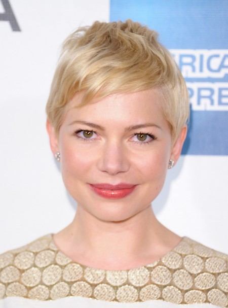 Michelle Williams Short Blonde Pixie Cut with Side Swept Fringes