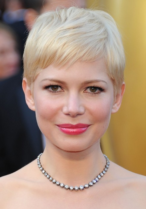 Michelle Williams Hairstyles – Short Blonde Pixie Haircut with Side Swept Bangs for Fine Hair