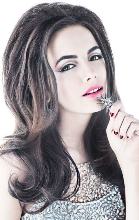 Camille Bella rocks this retro-chic hairstyle for a glamorous look. Locks on the crown have been teased a little higher to elongate the face silhouette and the two big strands of waves falling down the shoulder attach cuteness to the overall look. It’s super-great for a party look.