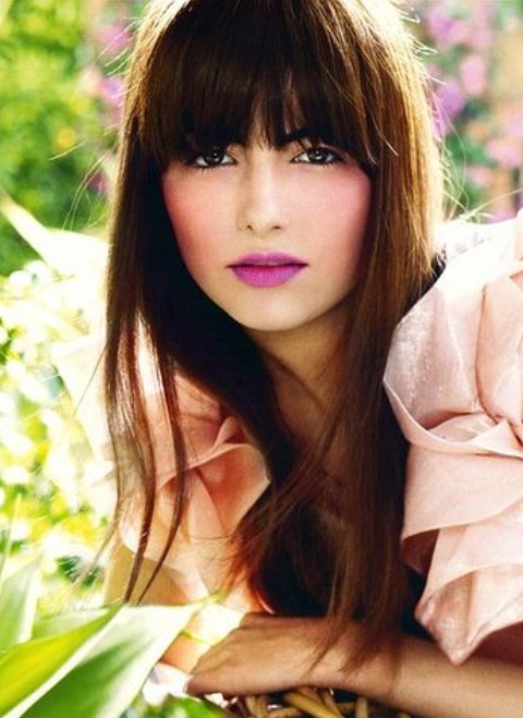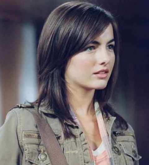 Camilla Bella sports a straight haircut with her brown hair. The over-grow bangs just reaches closely to her eyes and the long tresses cover the sides of her face. Thus, her pretty face becomes the focus of attention. Anyone can be faddish and adorable with this cute hairstyle.