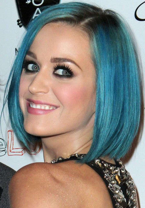 Kat Perry Hairstyles: Blue Side-parted Bob