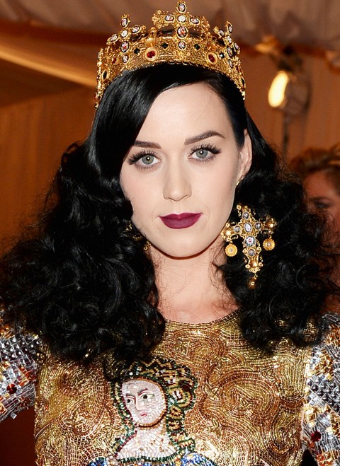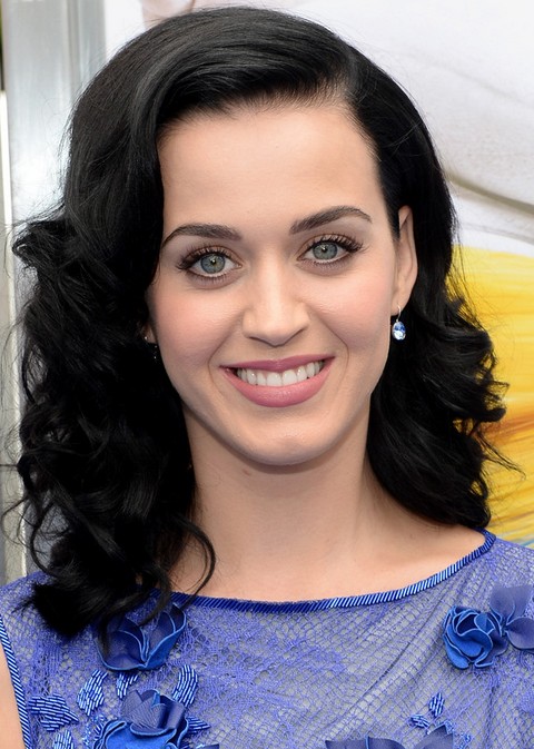 Kat Perry Hairstyles: Side-parted Curls for Raven Hair