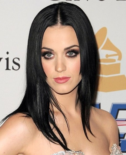 Kat Perry Hairstyles: Super-straight Center-parted Haircut