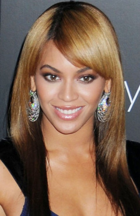 Beyonce Hairstyles: Slick Long Straight Haircut with Bangs