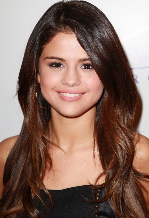 Selena Gomez Hairstyles: Center-parted Layered Cut for Girls-Next-Door
