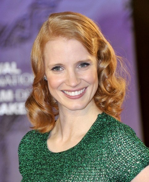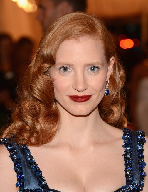 Jessica Chastain Mid-length Hairstyle: Retro Curls