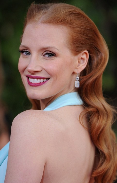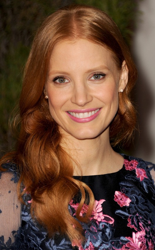 Jessica Chastain Long Hairstyle: Waves with Long Side Part