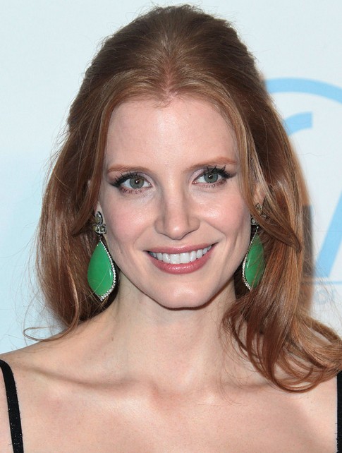 Jessica Chastain is so sweet with her half-up and half-down hairstyle. The face-framing locks soften her look while the central part enlightens her eyes.