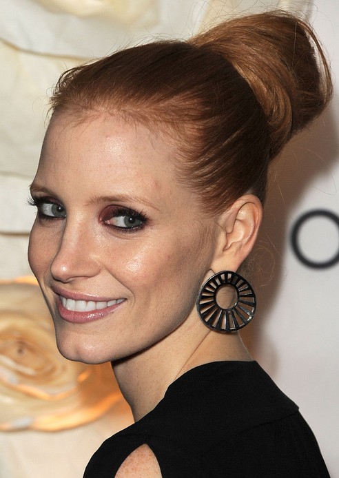 Jessica Chastain Long Hairstyle: Pretty Bun