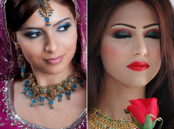 What I’m introducing today are quite decent for almost every special occasions, including parties, weddings, dinner and so on. They even can be good choices for your New Year’s celebration! Base on your own preferences and skin types, you will gain a wide selection of Indian makeup styles. After trying these, perhaps you’ll have interest in wearing an Indian Sari to add more exoticism for yourself. Quiet and bold colors of lines used in those makeups can be excellent matches for your dress color. This collection consists of assorted kinds of blusher, eye shadow, lipstick, etc. You can choose one to meet your own needs and suitalbe for your features. The use of heavy glitter on the eyelids can add more chic and glamour to you.